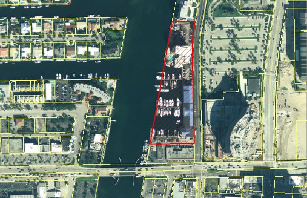 BCPA Aerial with Property outlined In red. Condo Highrise To East Of Site.